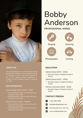 Each talent maintains his or her own profile, which you as the agent may modify as necessary. Talent profiles are available online and include images, video clips, voice-over, resume with the ability to print and email in a professional and acceptable format.